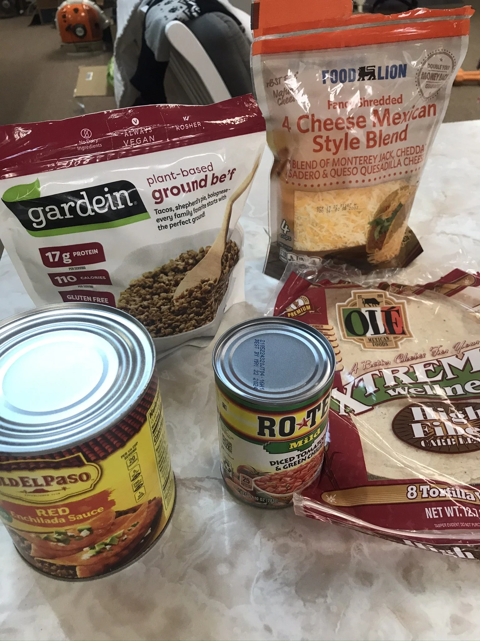 I’m a sucker for ordering takeout but I am trying my best to “A” be healthier and “B” save money. So, I rummaged through the cabinet and decided to throw together a quick and easy recipe for plant-based enchiladas.